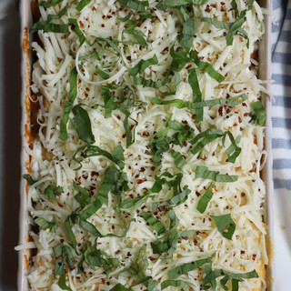 Cover the dish with aluminum foil + bake for 50 minutes. Then remove the foil and bake another 10 minutes, broil on high for 1 minute at the end (keep a close eye on it so it doesn't burn!!)